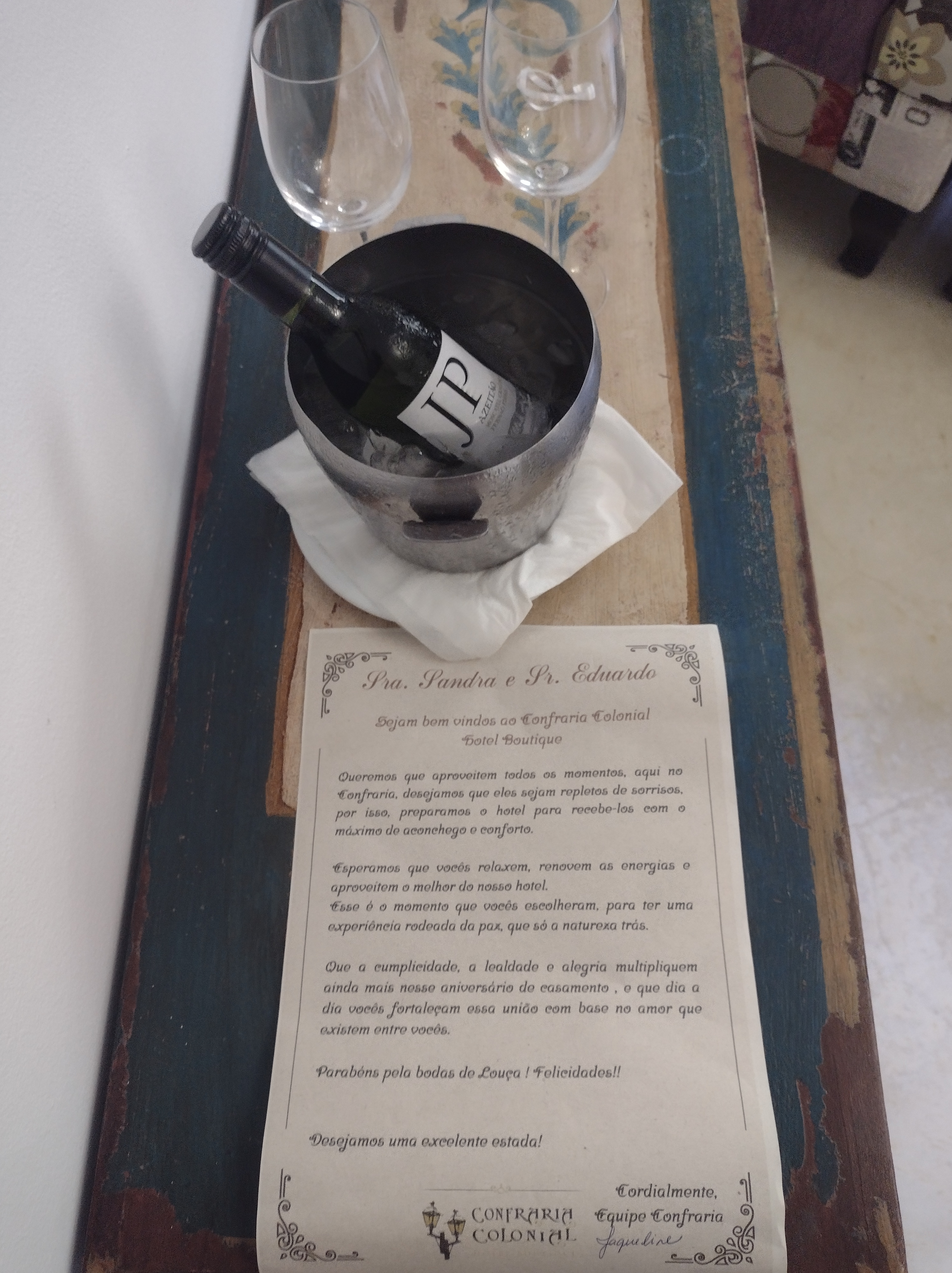 Como avisamos antes que passaríamos o aniversário de casamento lá, ainda fomos surpreendidos na chegada com um mimo especial em alusão à data.