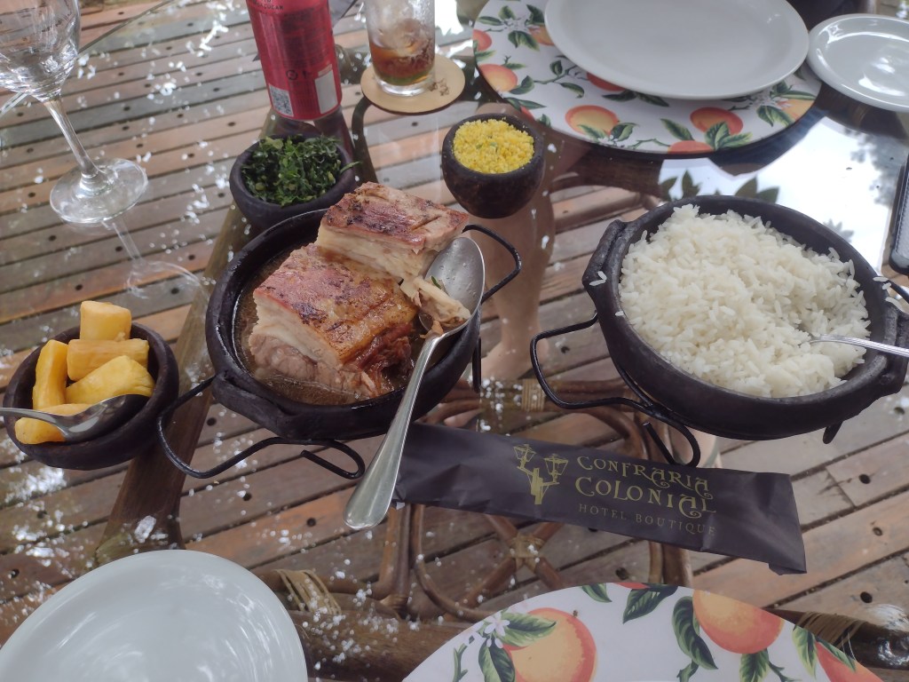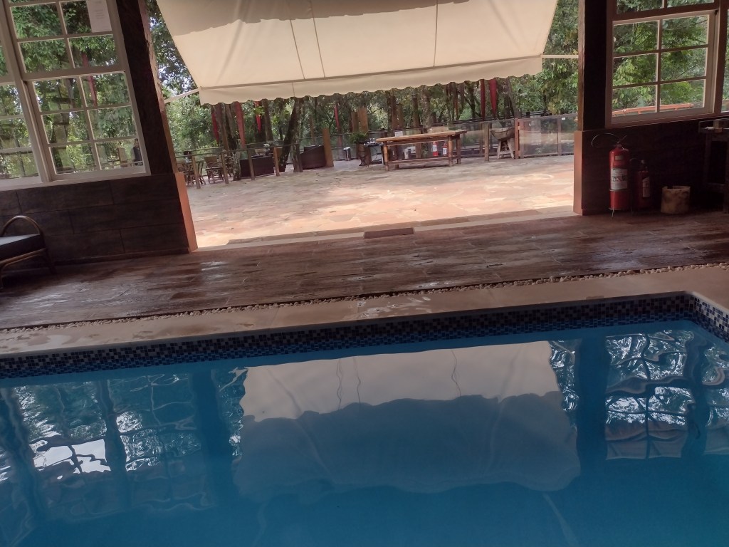 A única observação negativa no quesito alimentação é por conta de não ter nenhuma bebida incluída no almoço ou jantar. Nem mesmo água ou bebidas não alcoólicas. Pelo valor da diária, considero mesquinho não incluir. Mas, a regra é informada antes, não foi uma surpresa. Com o estilo colonial, caberia até ter um filtro de barro nos quartos, para oferecer água filtrada, ao menos.